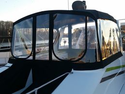 A canvas-covered, freestanding boat top with a collapsible metal frame. Bimini tops usually cover the windshield and center console of the vessel and offer shade and protection from the elements. Unlike Convertible Tops, Bimini Tops are freestanding and do not attach to the windshield.